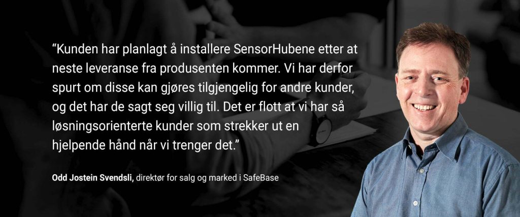 — Kunden har planlagt å installere SensorHubene etter at neste leveranse fra produsenten kommer. Vi har derfor spurt om disse kan gjøres tilgjengelig for andre kunder, og det har de sagt seg villig til. Det er flott at vi har så løsningsorienterte kunder som strekker ut en hjelpende hånd når vi trenger det, sier direktør for salg og marked i SafeBase, Odd Jostein Svendsli.