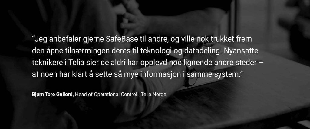 — Jeg anbefaler gjerne SafeBase til andre, og ville nok trukket frem den åpne tilnærmingen deres til teknologi og datadeling. Nyansatte teknikere i Telia sier de aldri har opplevd noe lignende andre steder – at noen har klart å sette så mye informasjon i samme system.